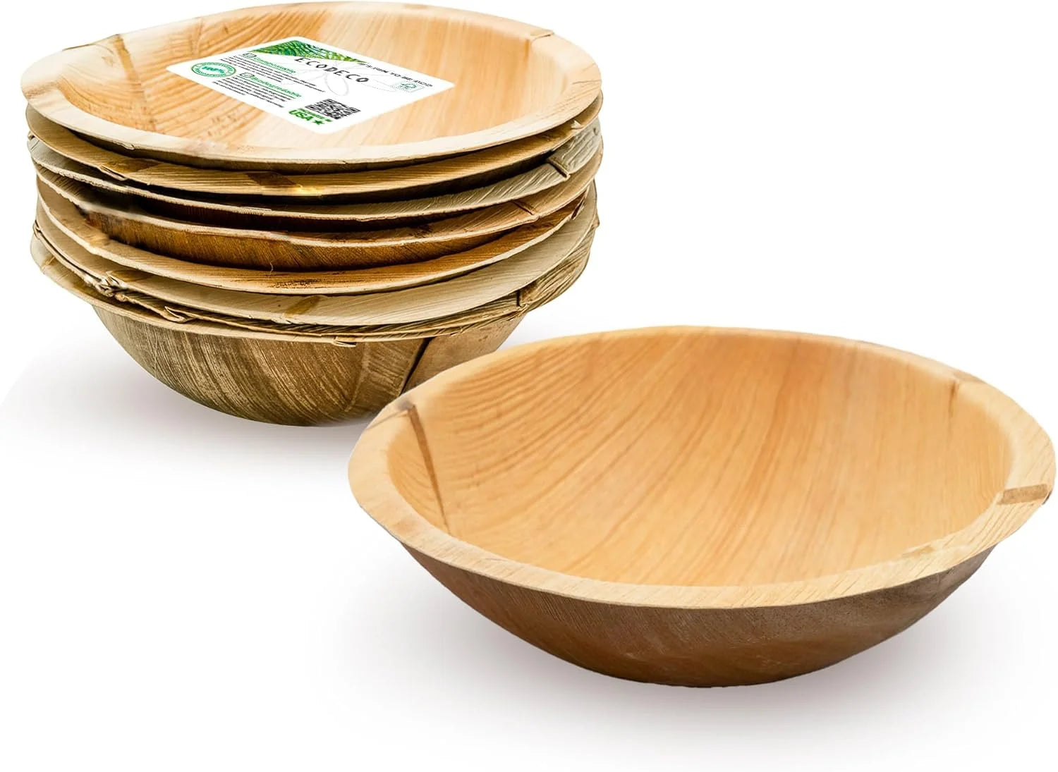8.5-Inch Palm Leaf Serving Bowls – 10-Pack Large 40 oz Eco-Friendly Deep Disposable Plates