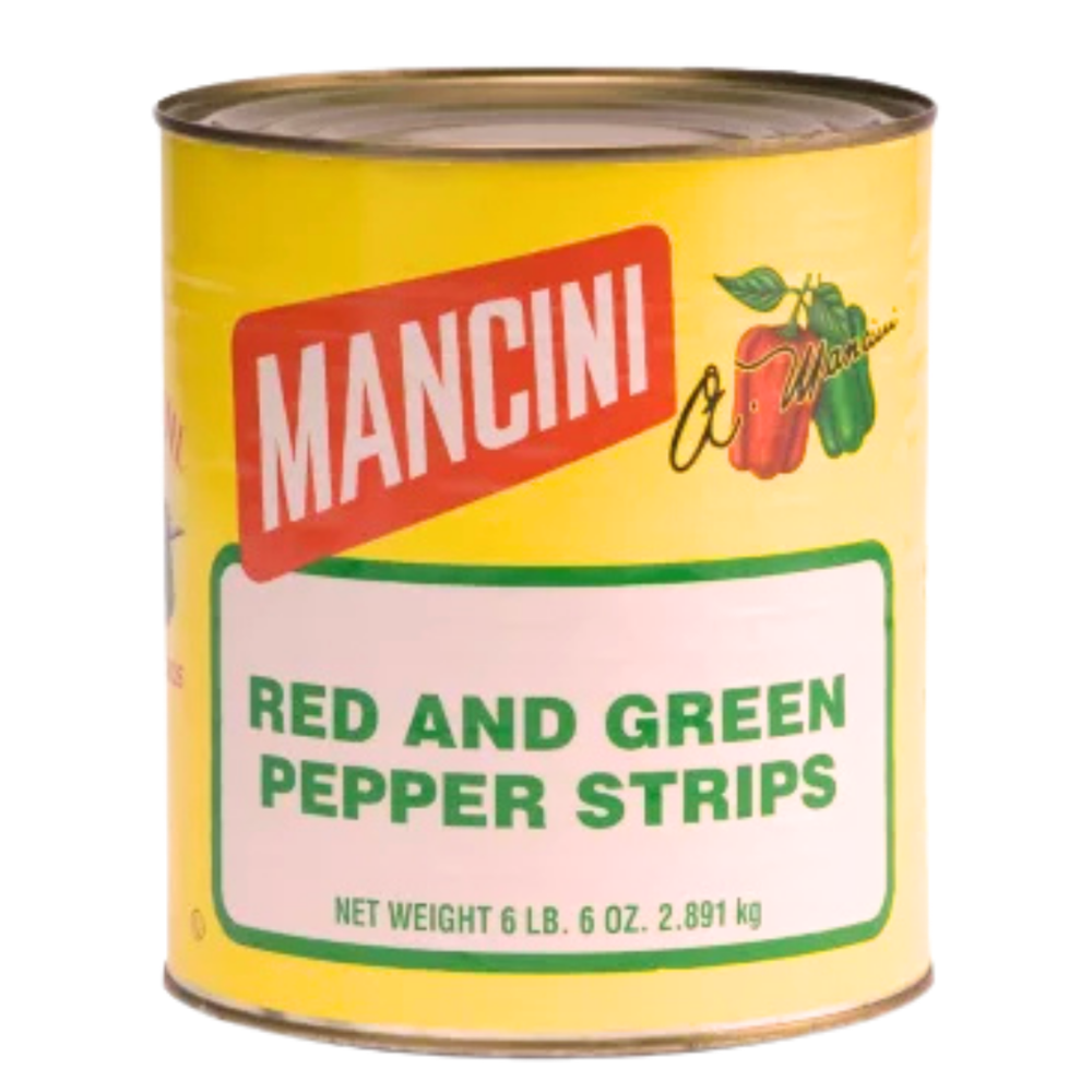 Mancini Red & Green Bell Pepper Strips (#10 Can, 105.82 oz)
