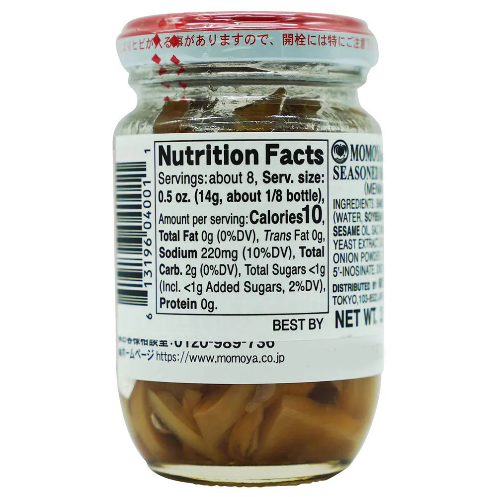 A must-have topping for ramen, rice bowls, and stir-fries, Momoya’s seasoned bamboo shoots can also be enjoyed straight from the jar as a flavorful appetizer. Crafted in Japan using time-honored methods, they deliver restaurant-quality taste in every bite.