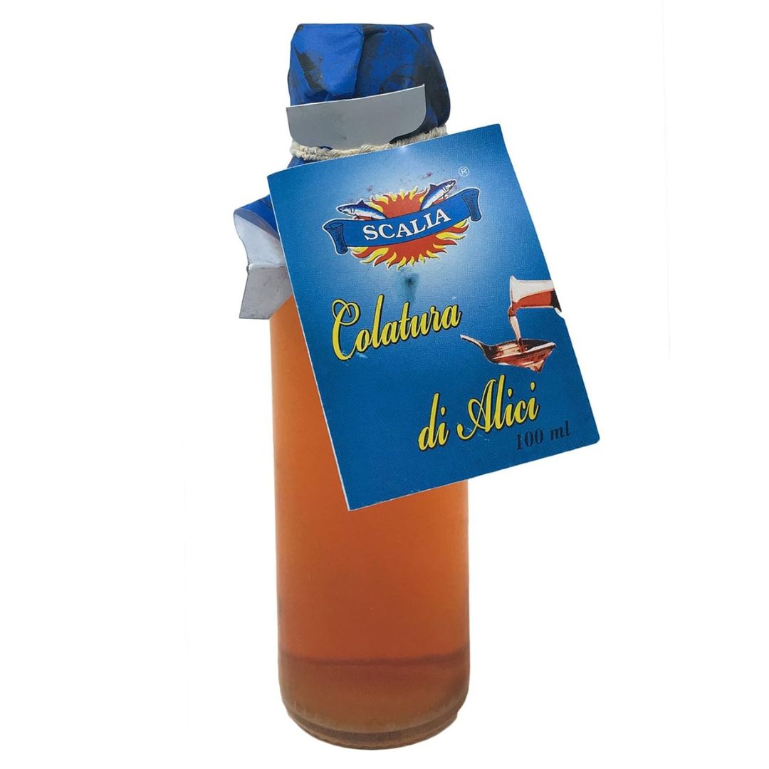 Discover the bold, umami-rich flavor of Scalia Colatura di Alici, a traditional Italian anchovy essence from the Amalfi Coast. This golden liquid is extracted from salted anchovies through an ancient method passed down for generations, offering an authentic taste of Southern Italy.