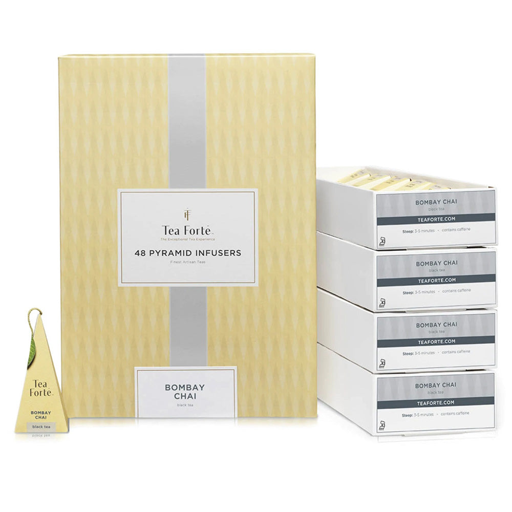 TEA FORTE Bombay Chai Tea – Spiced Black Tea Pyramid Infusers (40 Count Bulk Box)