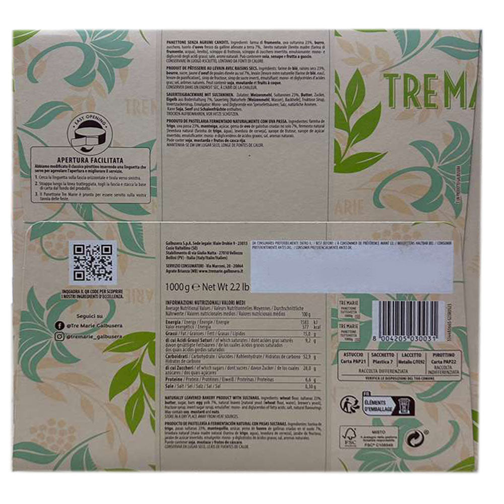 Tre Marie Panettone Senza Canditi - Italian Sweet Bread 2.2 lbs